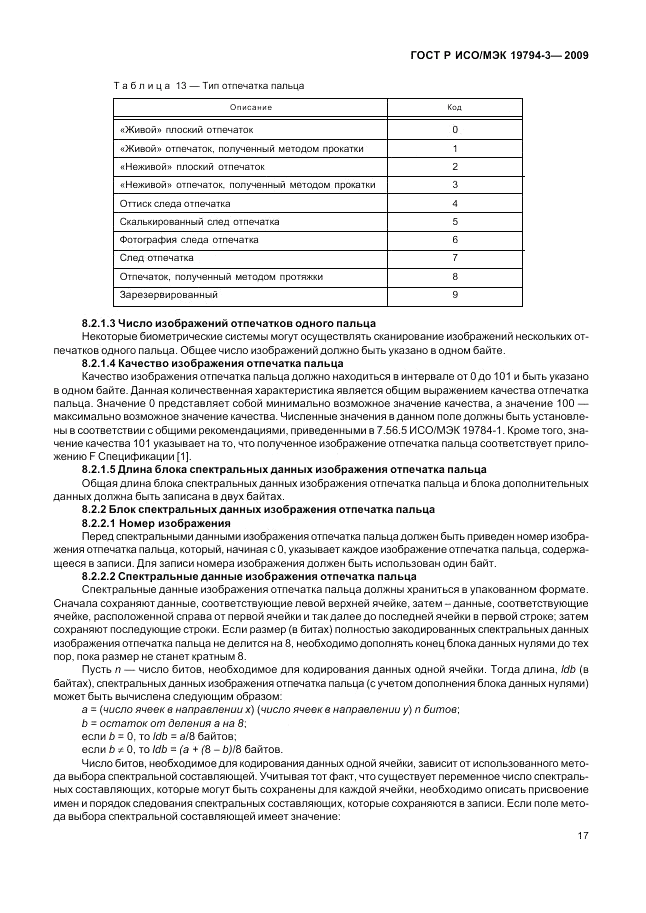 ГОСТ Р ИСО/МЭК 19794-3-2009 Автоматическая идентификация. Идентификация биометрическая. Форматы обмена биометрическими данными. Часть 3. Спектральные данные изображения отпечатка пальца