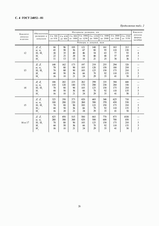 ГОСТ 24852-81 Калибры гладкие для размеров свыше 500 до 3150 мм. Допуски