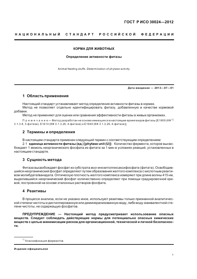 - Настоящий стандарт устанавливает метод определения активности фитазы в кормах. Метод не позволяет отдельно идентифицировать фитазу, добавленную в качестве кормовой добавки. Метод не применяют для оценки или сравнения эффективности фитазы в живых организмах
