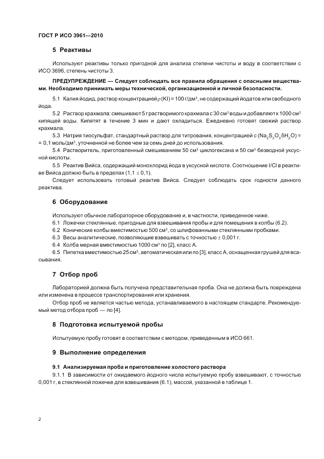 ГОСТ Р ИСО 3961-2010 Жиры и масла животные и растительные. Определение йодного числа