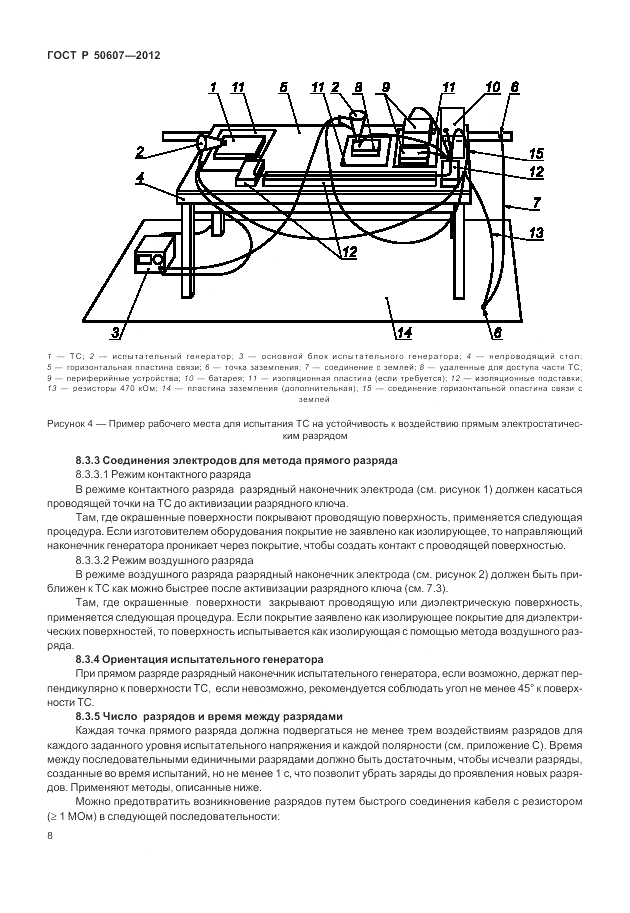 ГОСТ Р 50607-2012 Совместимость технических средств электромагнитная. Транспорт дорожный. Методы испытаний для электрических помех от электростатических разрядов
