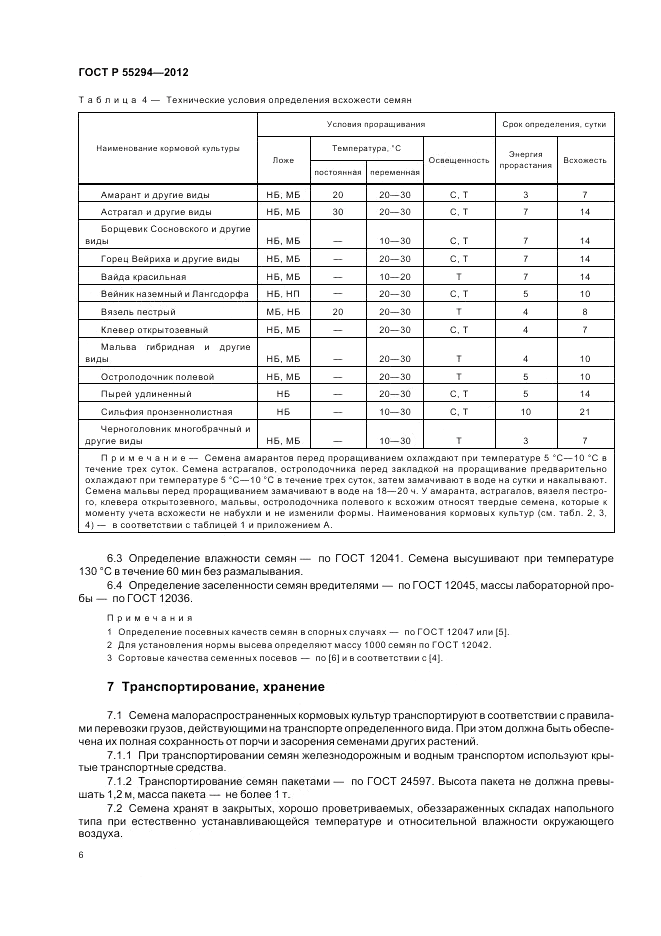 ГОСТ Р 55294-2012 Семена малораспространенных кормовых культур. Посевные качества. Технические условия