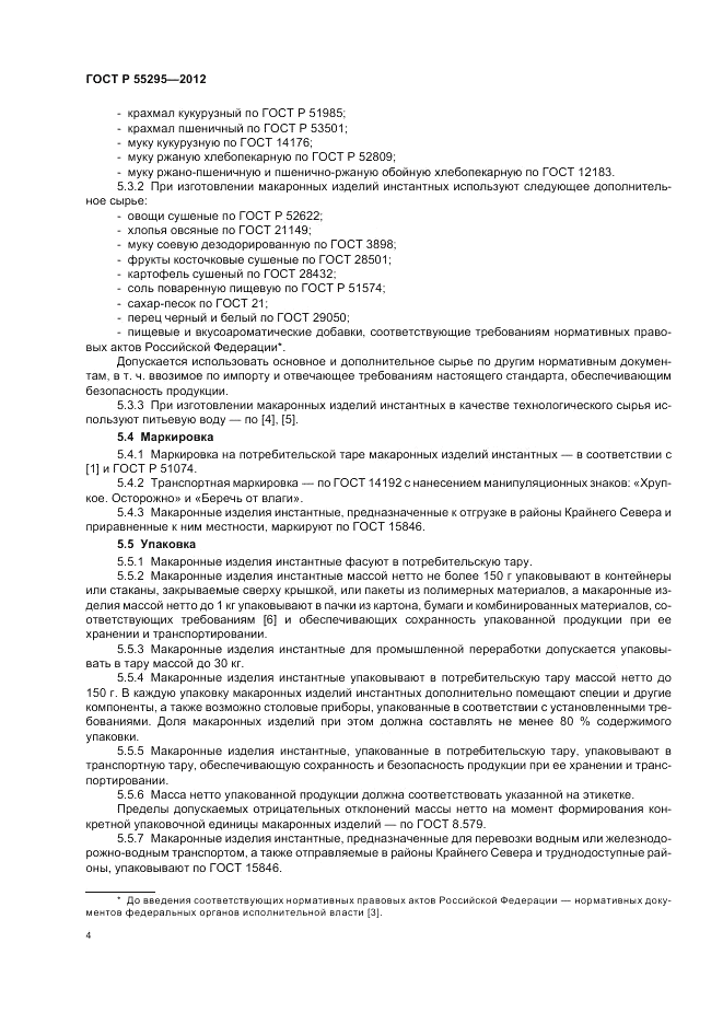 ГОСТ Р 55295-2012 Изделия макаронные инстантные. Общие технические условия