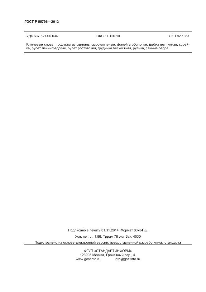 ГОСТ Р 55796-2013 Продукты из свинины сырокопченые. Технические условия